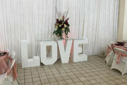 Tea Lights, Chargers, Mirrors, Napkin Rings, Table Numbers, Up lighting, Draping, Centerpieces, Vases, Bridal Bouquets